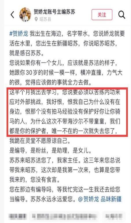 贺娇龙离世仅5天,牛鬼蛇神现行了,母亲发声,坠马细节曝光