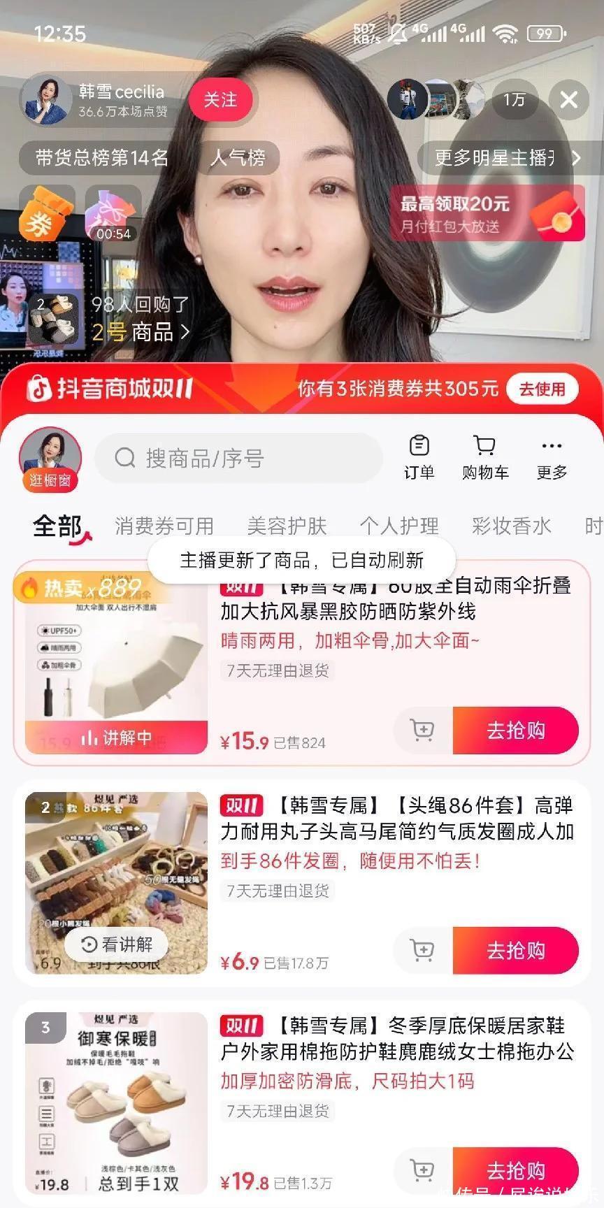 这些在我们普通人购物车里常见的物件,如今从韩雪手里推出来,总感觉有点违和。但就是这些平价商品,让她在短短几场直播里,创造了上千万的销售额。她不喊不叫,语速平缓,一招一式都透着一股专业劲儿。
